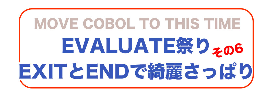 つまり END-EVALUATE は文法のカギカッコの閉じみたいなもので、EXIT EVALUATE は実行中にその閉じまでスキップする命令になるわけだ。