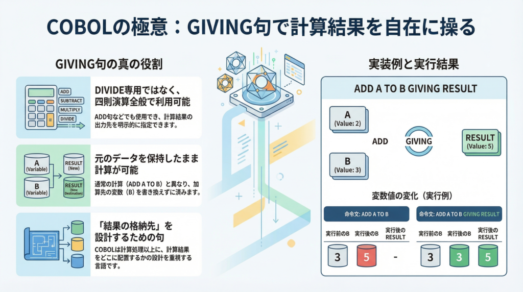 【COBOL 書き1-6-3】GIVINGはDIVIDEだけのもの?